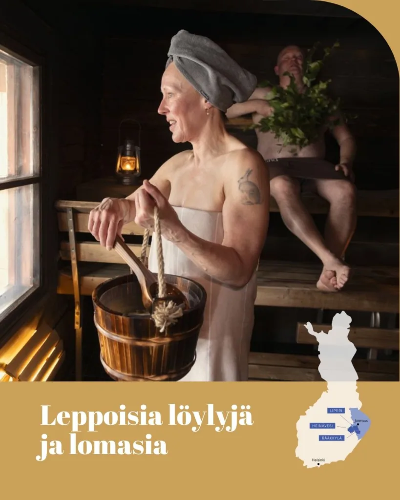 Milloin viimeksi nautit puulämmitteisen saunan löylyistä ja pulahdit uimaan puhtaaseen luonnonveteen? Meiltä löytyy jokaisesta majapaikastamme sauna leppein löylyin.
