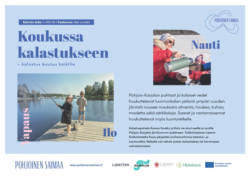 Räätälöityjä kalastus- ja luontoretkiä perheille, työporukoille ja erityisryhmille ympäri vuoden. Kaupan päälle oppaan kalajutut.